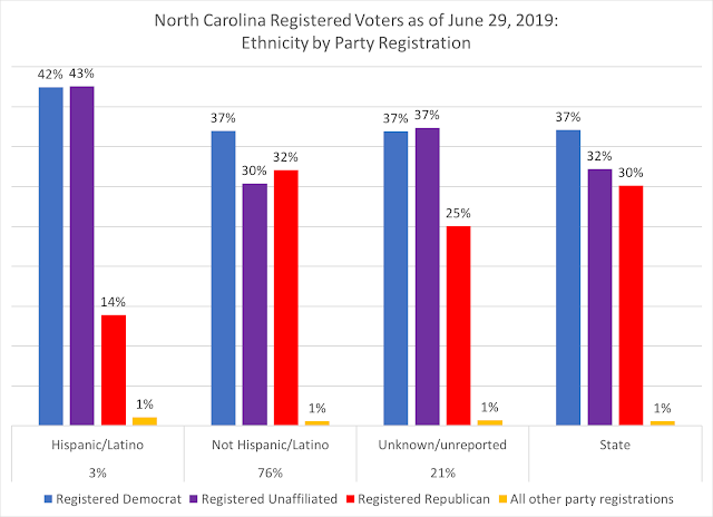 As we enter the second half of 2019 and watch the numbers of new registrants, the question becomes how much more diversification with the potential North Carolina electorate will we see, along with seeing if the potential electorate reaches 7 million registered voters. Expectations are that the 2020 election will see considerable interest, and if 2018's mid-term election (with 53 percent registered voter turnout) is any indication, new records may be set for the Old North State's electorate come November 2020.
