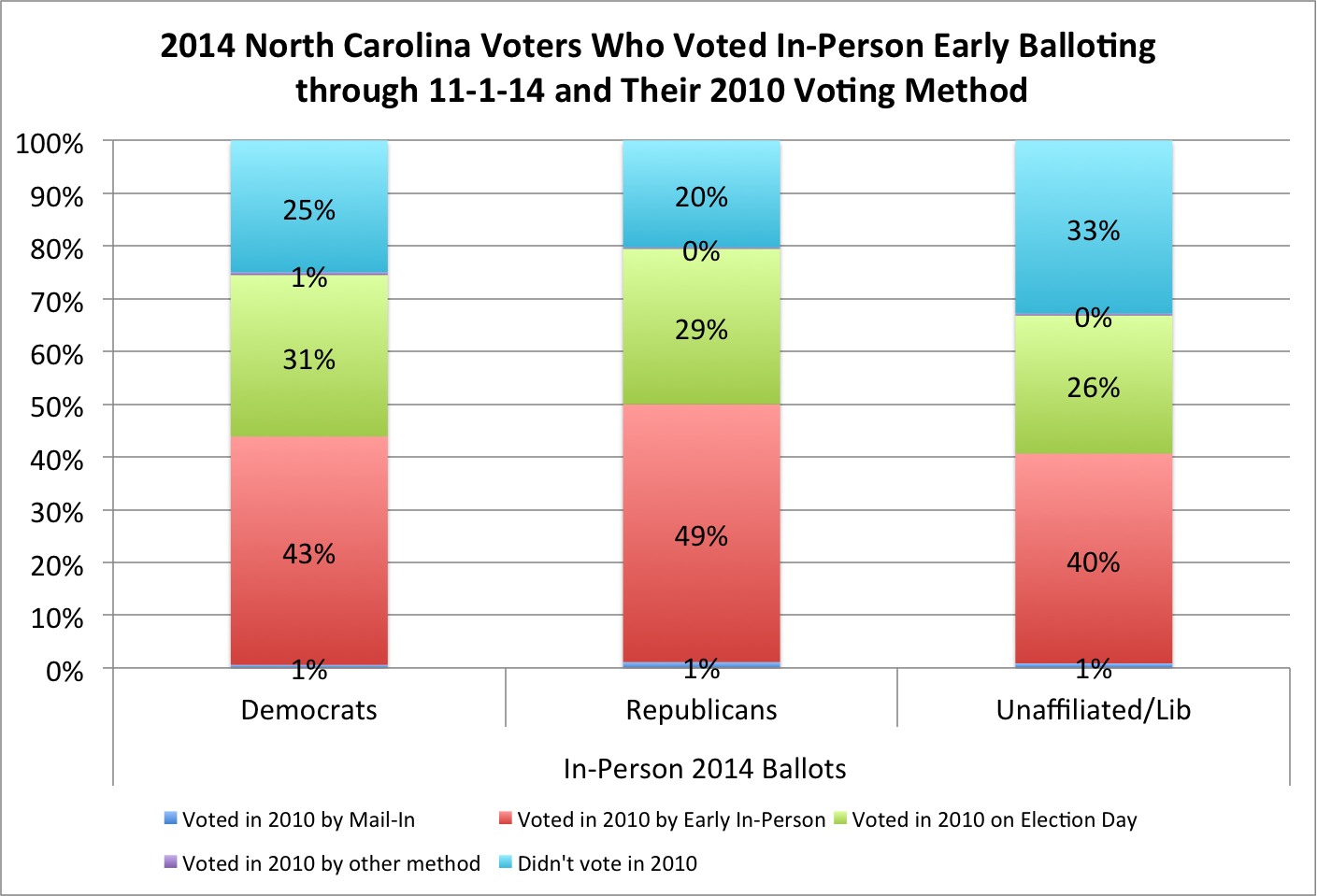- registered Unaffiliated & Libertarian voters cast 20.4 percent of the in-person accepted ballots, for a total of 224,011 ballots, representing 145 percent of the final day unaffiliated/Libertarian totals in 2010.