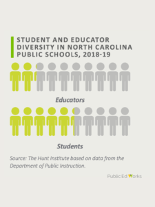 The research remains unequivocal: A diverse teacher workforce improves academic outcomes, strengthens school climates, and benefits students of every race and ethnicity. Yet North Carolina continues to fall short in preparing, hiring, and retaining educators of color.