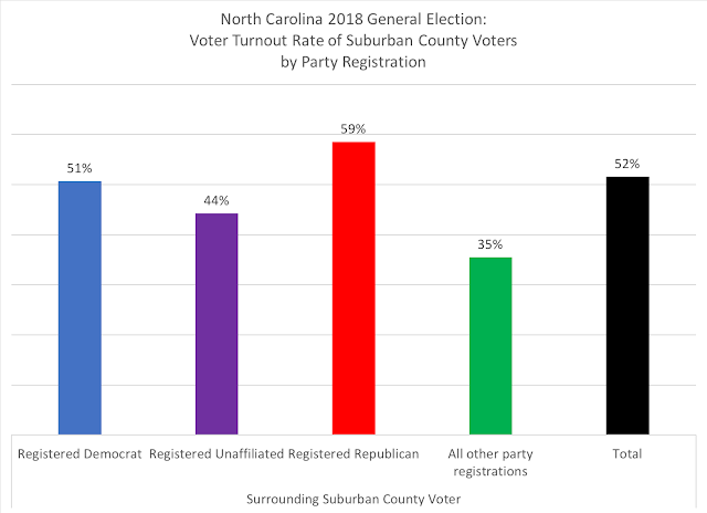 Typically, in NC mid-term elections, registered Republicans have the highest voter turnout rate among the party registrations within the voter pool, but 2018 was an exception, due to voter enthusiasm across the board: