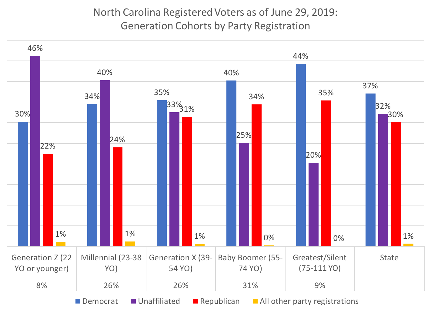 With the first half of 2019 in the books, and as we get closer to the 2020 election year, here's an overview of the 6.6 million registered voters in the Old North State, as of June 29, 2019.